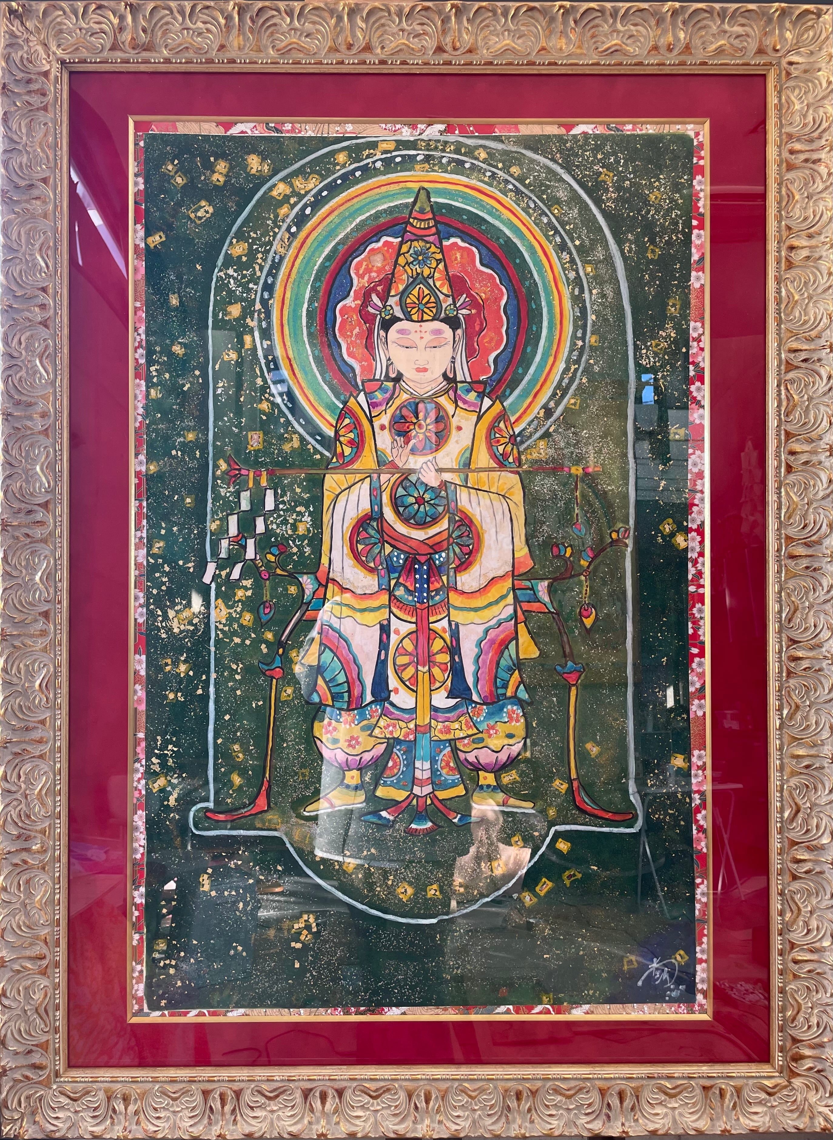 対称構図・神聖幾何学・光背表現すべてが整えられた本作は、単なる美術作品ではなく、**場を清め、運気を整える“神域装置”**としての役割を持ちます。